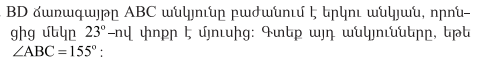 Անկյունների դասակարգումը Անկյունների դասակարգումը September 26, 2023 by hambardzumyanani 1. 32 30′ 2. 47, 30 3. 20, 60, 80 4. 100 30′, 54 30′ 5. 90, 30 6. 34, 51, 85, 85, 136 Share this: Click to share on X (Opens in new window) X Click to share on Facebook (Opens in new window) Facebook Like Loading... Related