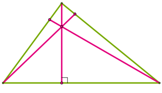 1)Երեք հատվածներ հատվում են նույն կետում: Գտի՛ր նկարը, որում ցույց է տրված եռանկյան բարձրությունը: