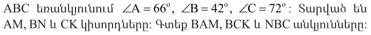 Երկրաչափություն Երկրաչափություն November 7, 2023November 9, 2023 by hambardzumyanani ♥ 0 Leave a Comment Առաջադրանքներ․ 1) AD=DC CD=DB AB=EC 96° 2) 6 Տնային աշխատանք․ 1) BAM=33 BCK=36 NBC=21 2) BAK=20 KAC=40