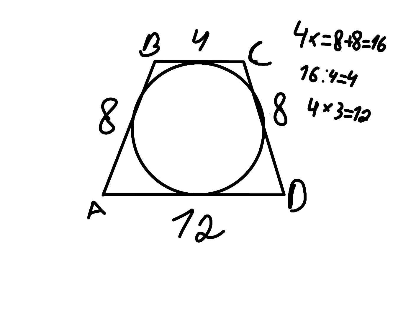 4)Հավասարասրուն սեղանին ներգծած է շրջանագիծ։ Այդ սեղանի պարագիծը 60սմ է։ Գտեք նրա սրունքը։
