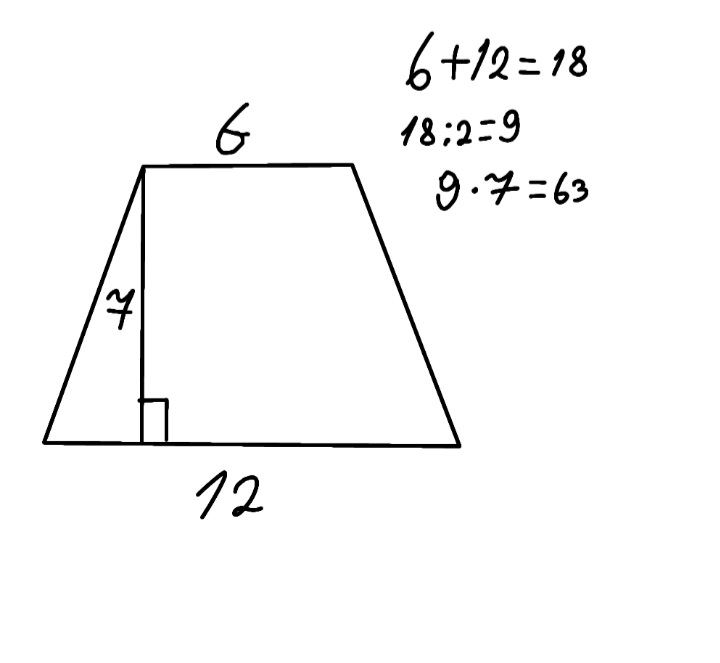 1)Սեղանի հիմքերը 12 սմ և 6 սմ են, բարձրությունը՝ 7 սմ: Գտեք սեղանի մակերեսը: