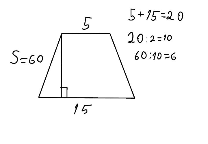 2)Սեղանի հիմքերը 15 դմ և 5 դմ են, մակերեսը՝ 60 դմ2 : Գտե՛ք սեղանի բարձրությունը: