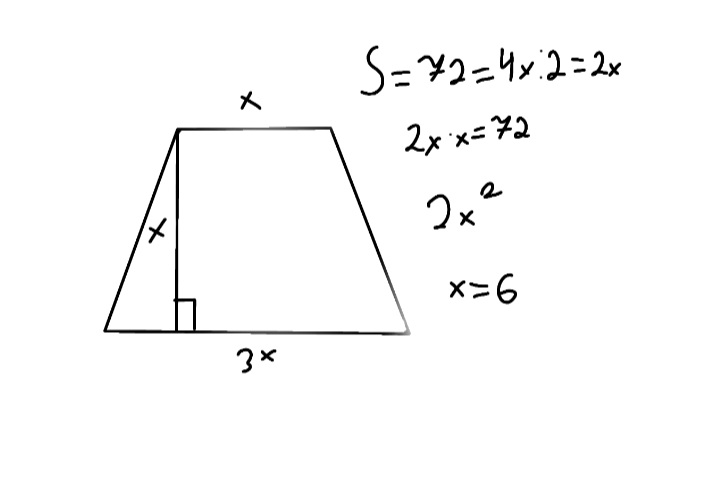 5)Սեղանի բարձրությունը հավասար է փոքր հիմքին և երեք անգամ փոքր է մեծ հիմքից: Գտեք սեղանի մեծ հիմքը, եթե մակերեսը 72 դմ2 է: