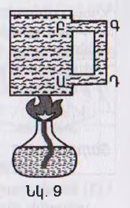 VIII.(1) Անոթում եղած ջուրը տաքանում է սպիրտայրոցի օգնությամբ (նկ.9)։