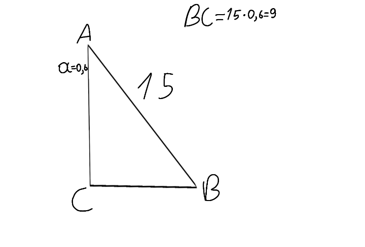 2)C ուղիղ անկյունով ABC եռանկյունում AB = 15 սմ, իսկ A անկյան սինուսը 0,6 է: Գտե՛ք BC-ն: