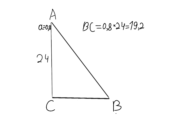 8)C ուղիղ անկյունով ABC եռանկյունում AC = 24 դմ, իսկ A անկյան տանգենսը 0,6 է: Գտեք BC-ն: