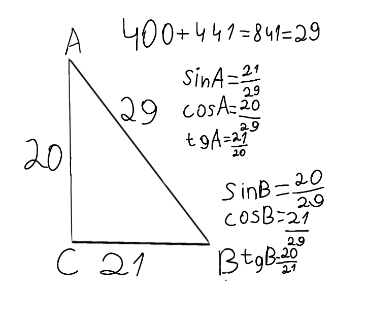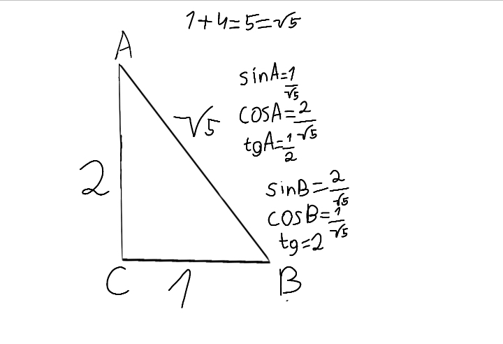 1)Գտեք C ուղիղ անկյունով ABC եռանկյան A և B անկյունների սինուսը, կոսինուսը և տանգենսը, եթե