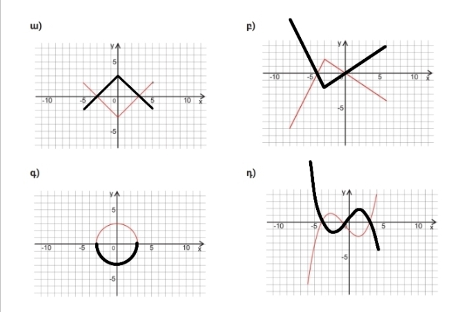 2)Տրված f(x) ֆունկցիան y-ների առանցքի երկայնքով ձգեցին 1.5 անգամ և իջեցրին 5 միավորով ներքև: Ո՞ր ֆունկցիայի գրաֆիկը ստացվեց: