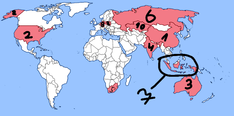 Շատ երկրներ իրենց դիրքի պատճառով չեն ունենում բնական ռեսուրսներ դրա պատճառով էլ առնում են ուրիշ երկրներից։ Ինչքան մեծ է երկիրը այնքան մեծ է նրա ռեսուրսների տեղը։