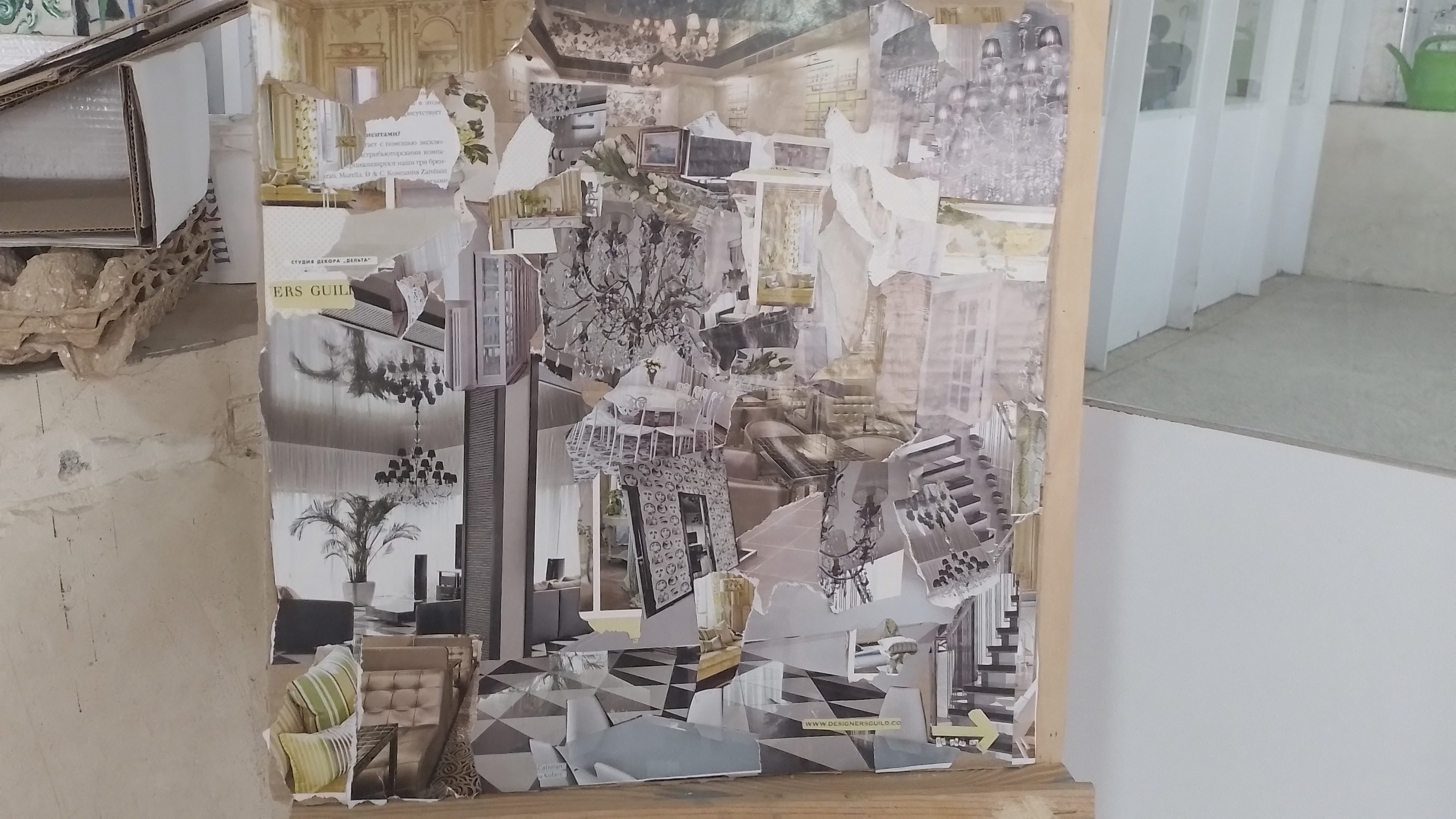 Այս կոլաժում ես պատկերել եմ ժամանակակից ինտերիեր։ Քանի որ իմ կարծիքով նման կանաչավուն դեղինը և սևը շատ լավ համադրվում են և դրա համար ստեղծեցի այսպիսի կոլաժ։